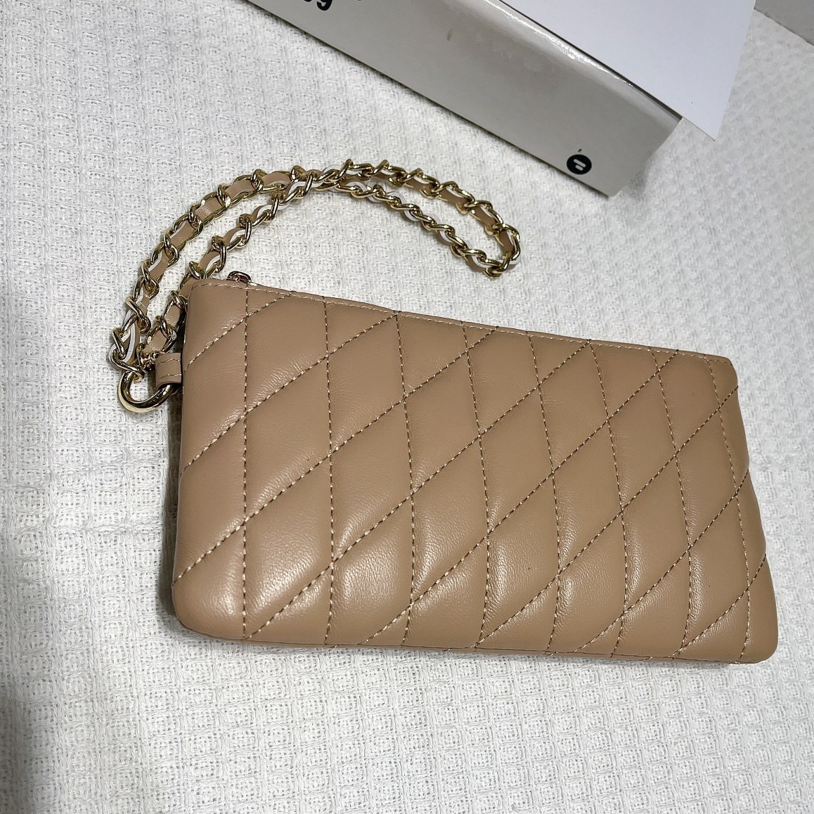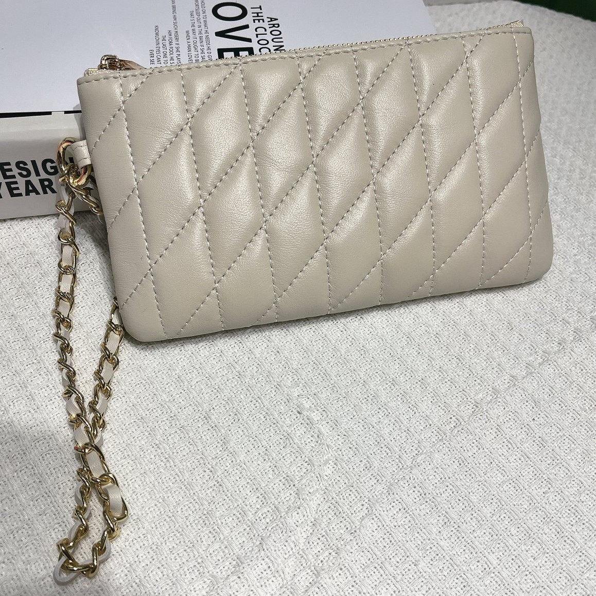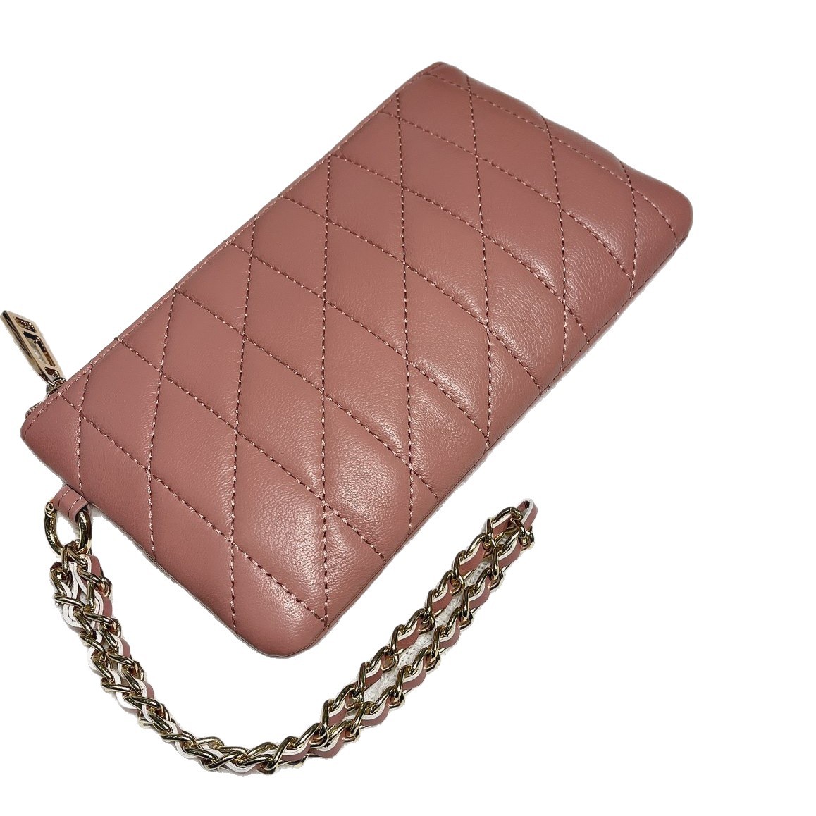 羊皮小香风手拿钱包女真皮跨境新款钱包女款时尚菱格手拎链条包包