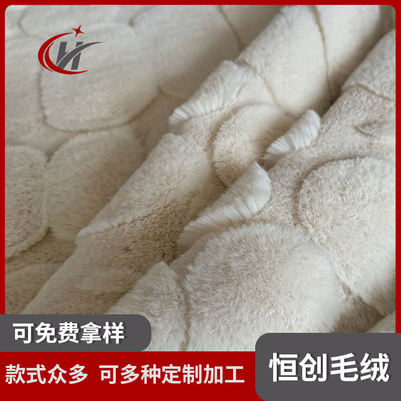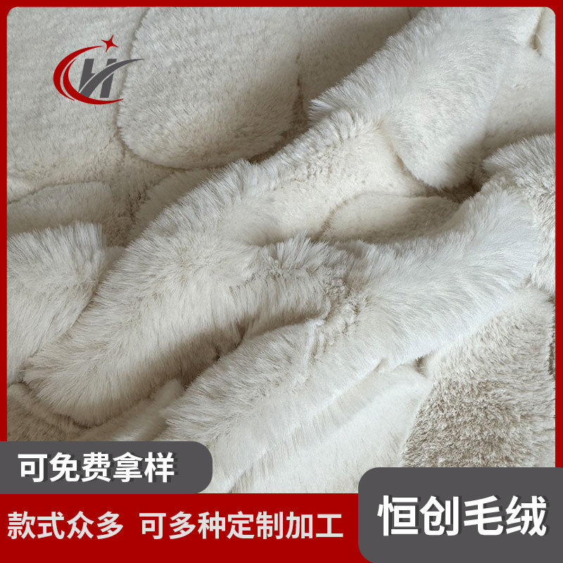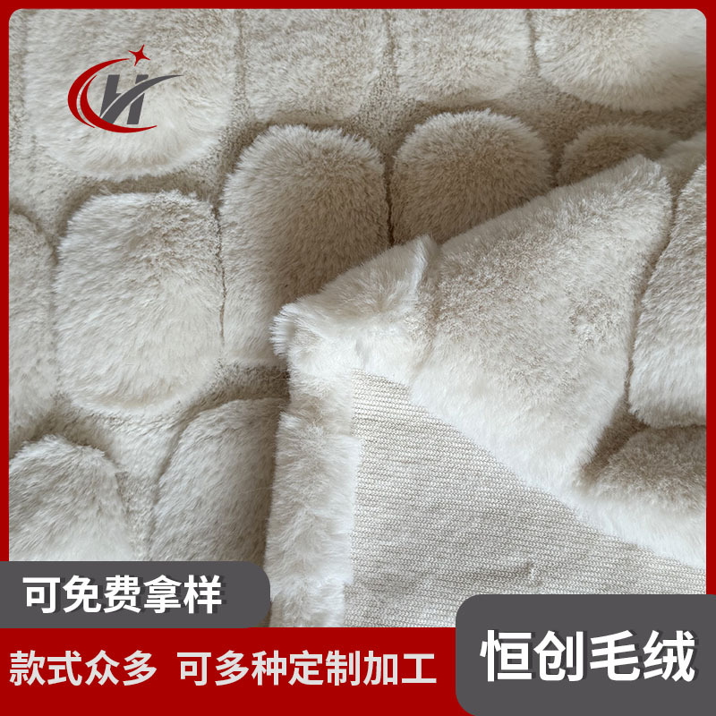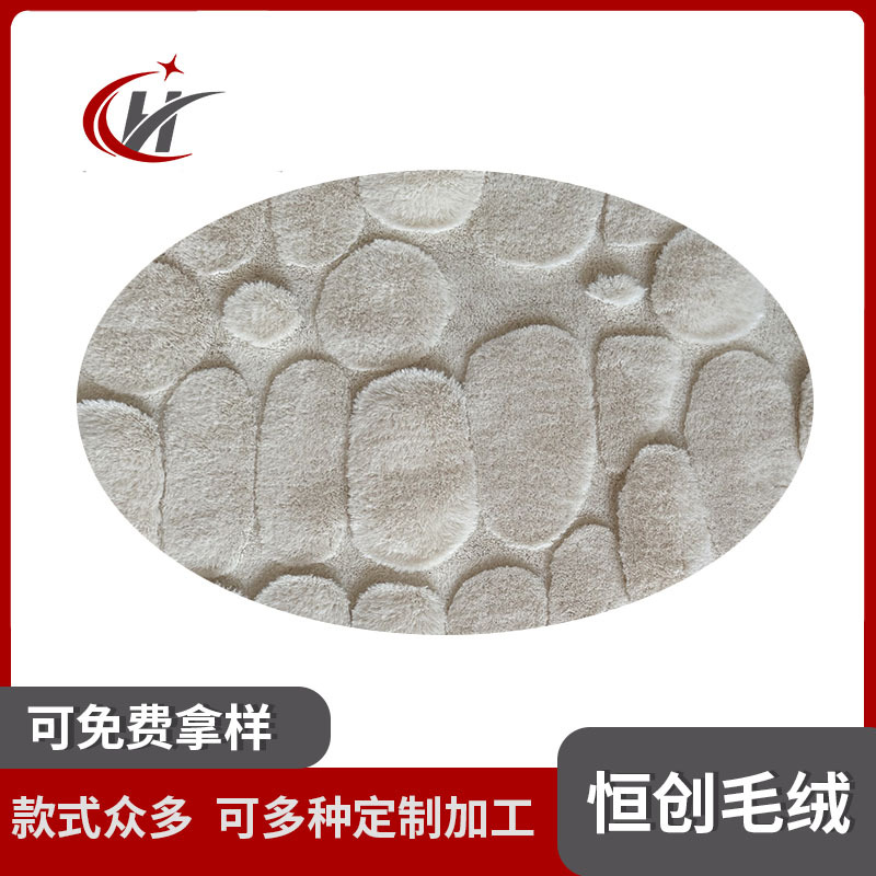 不规则鹅卵石形态三层提花仿兔毛面料 靠垫抱枕纬编提花长毛绒布