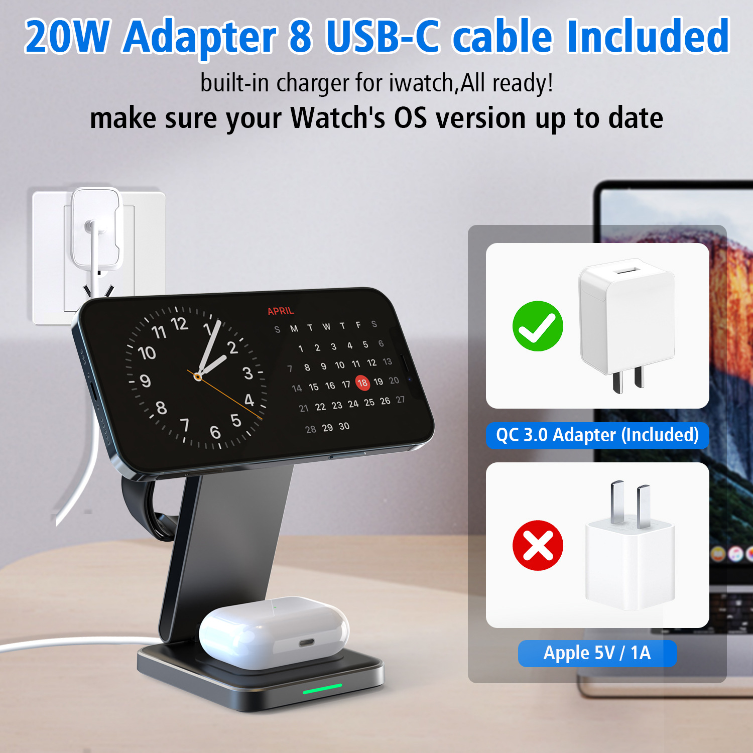 桌面三合一无线充磁吸立式快充苹果手机支架专用充电器磁吸无线充