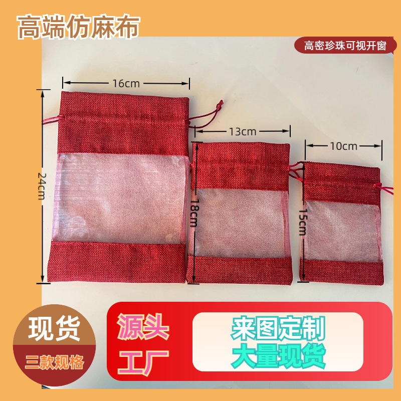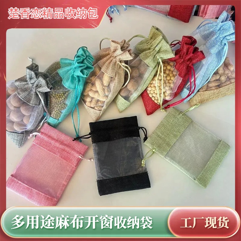 首饰袋可视麻布开窗袋抽绳束口收纳袋子文玩佛珠核桃盘珠礼品袋