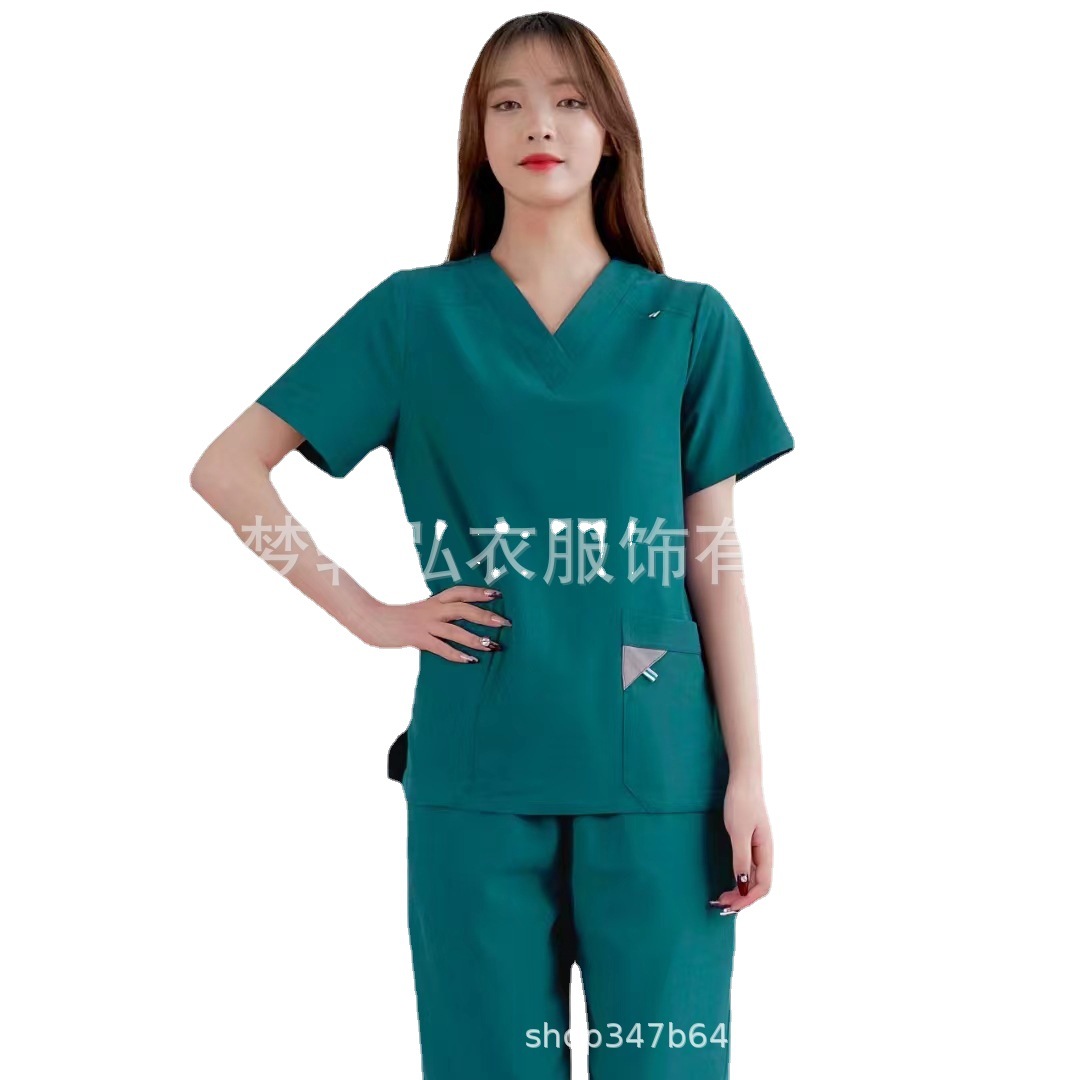 加绒高端洗手衣弹力速干短袖套装手术衣刷手服医生护工美容院工作