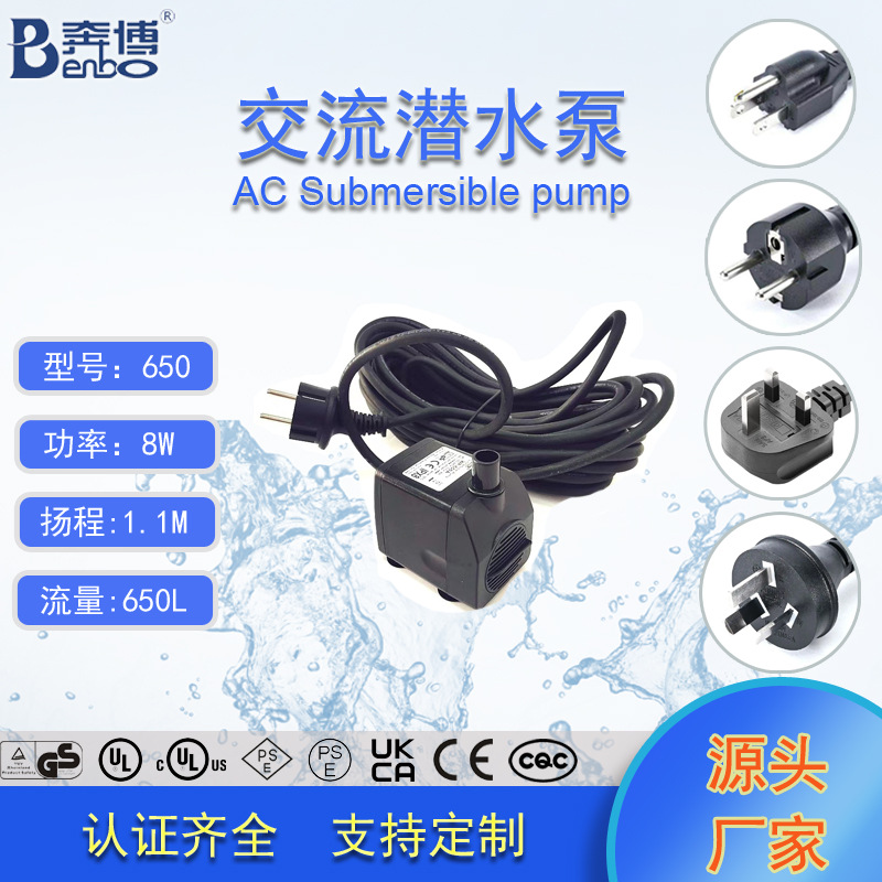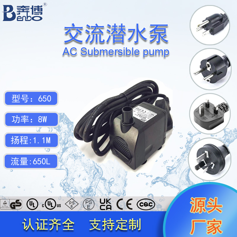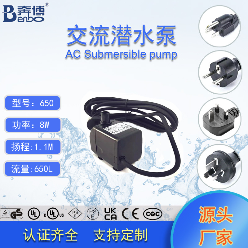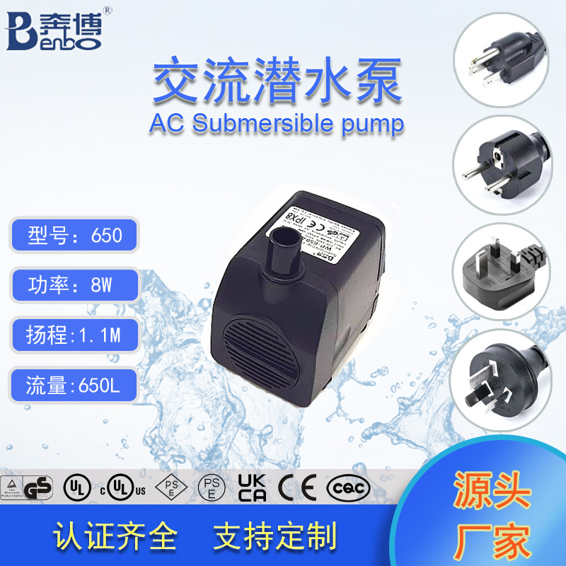奔博UL认证650L/H鱼缸抽水泵制冰机水泵冷风机水泵假山流水喷泉泵