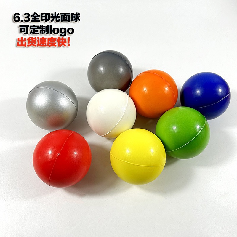 东莞批发63mm全印光面PU发泡弹力球可印刷LOGO康复训练工具握力球