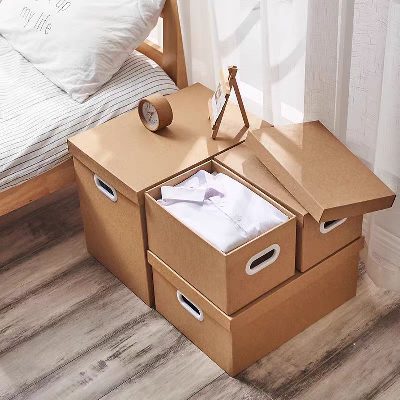 牛皮纸质收纳箱零食搬家超硬有盖档案衣服装书储物纸箱整理文件盒