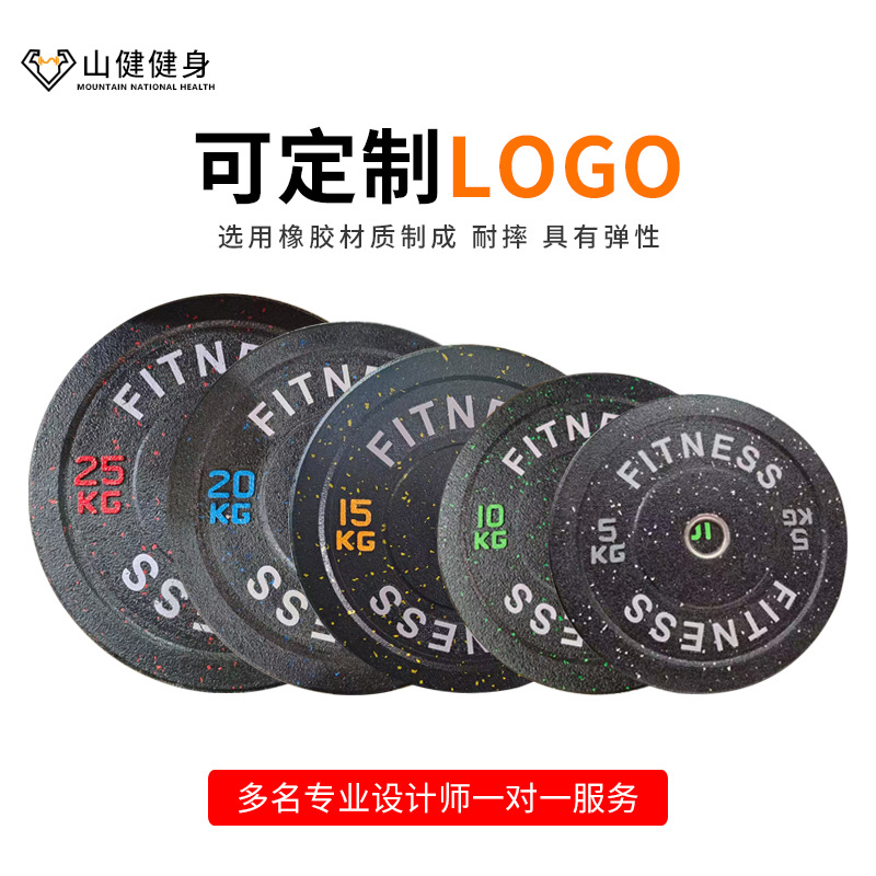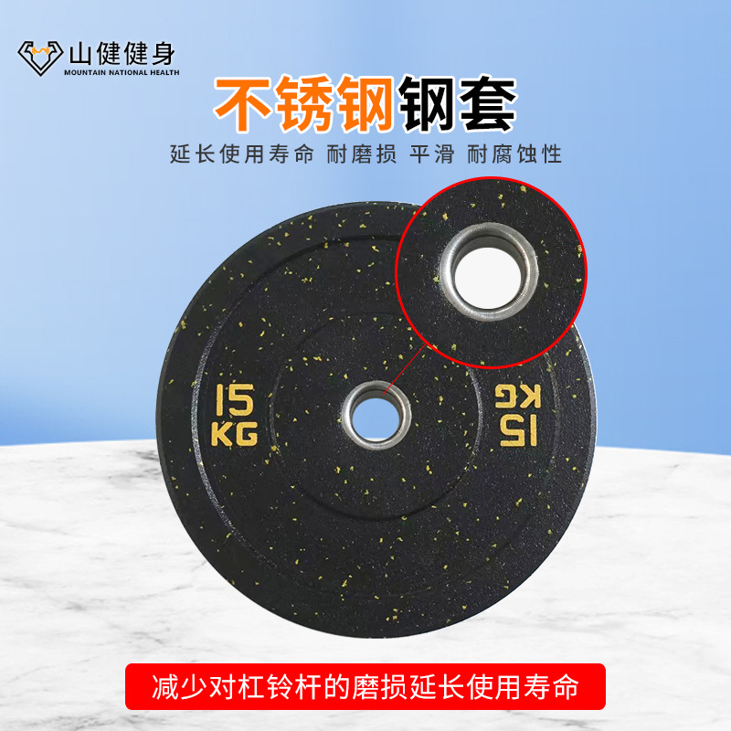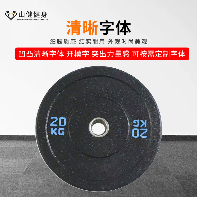 颗粒杠铃片商用健身房举重抗摔健身美体彩色高弹颗粒小孔哑铃片