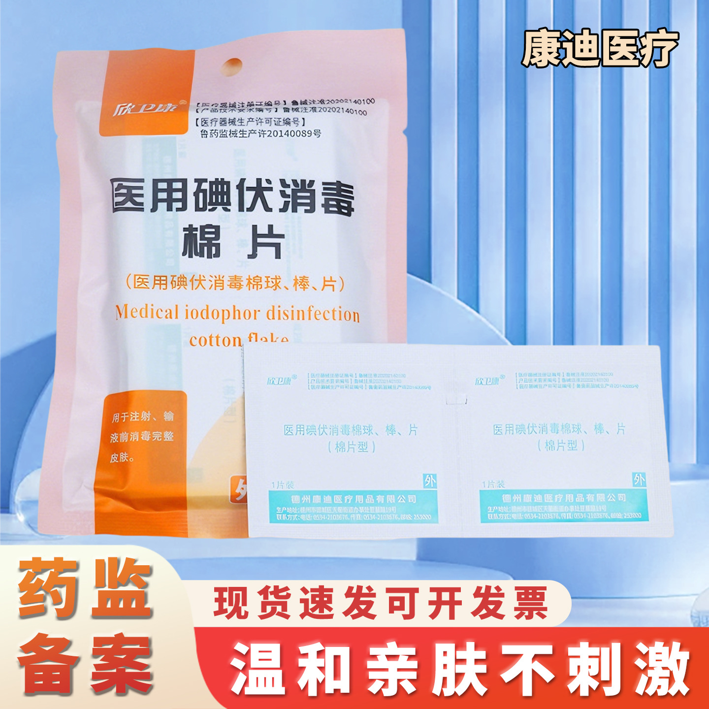 医用碘伏消毒棉片伤口杀菌清洁消毒片户外一次性医用碘伏消毒棉片