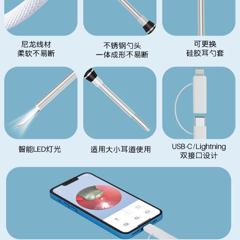 跨境新款高清1920P可视挖耳勺 直接智能可视掏耳勺可视护理套装