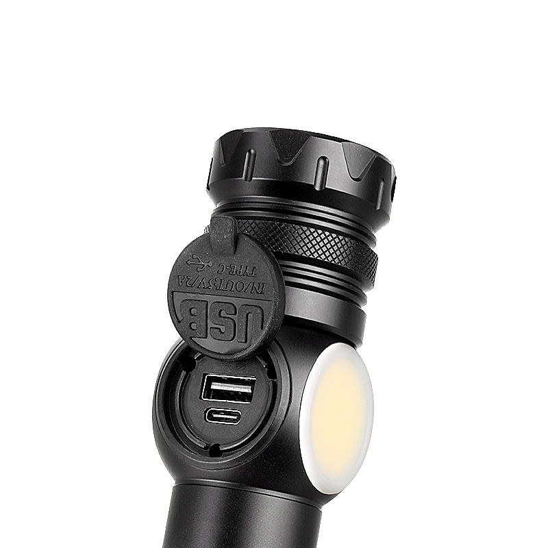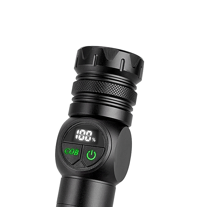 跨境爆款多功能远射强光手电筒电量显示红光警示充电宝功能磁铁