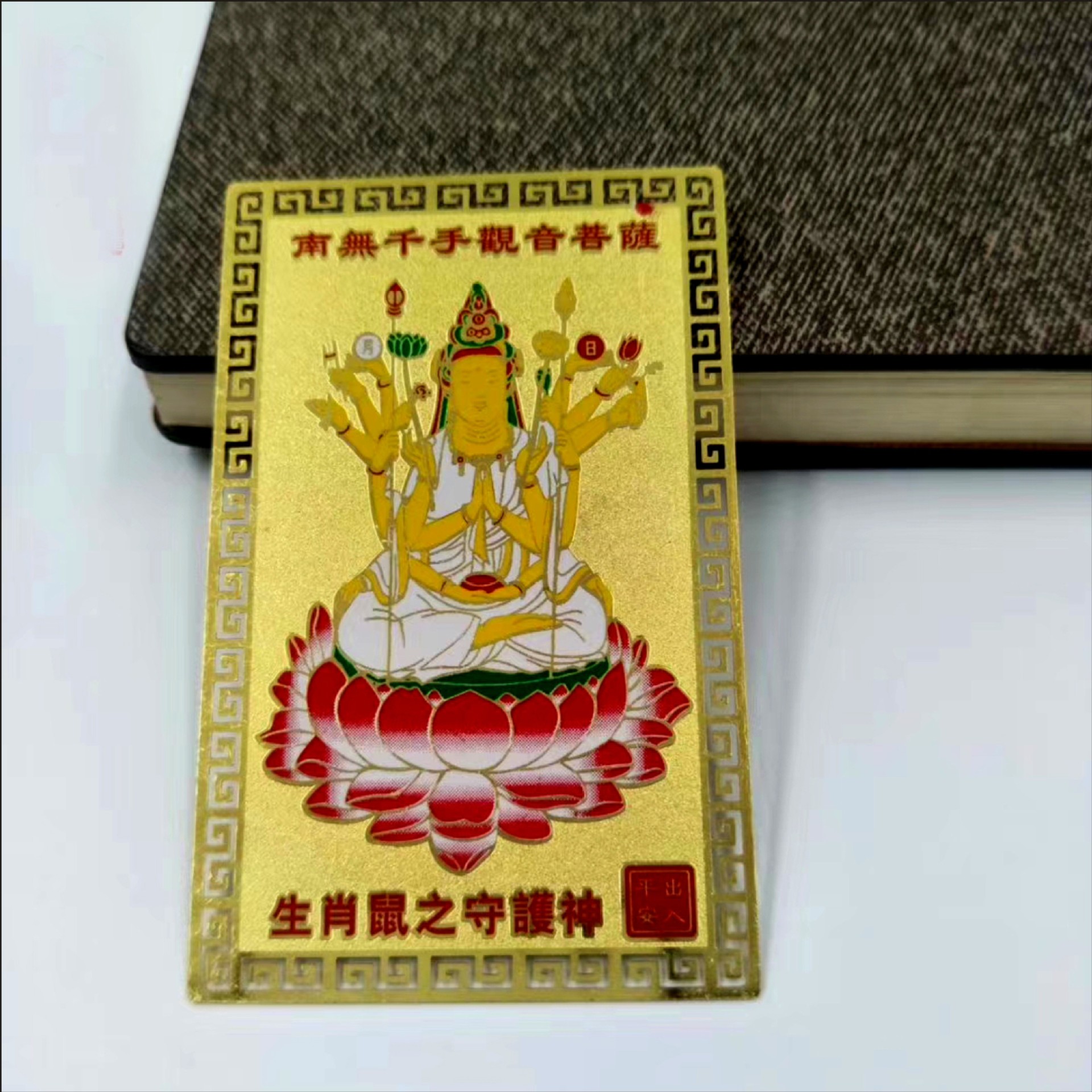 定 制 金属佛卡文殊菩萨纯铜金卡十二生肖铜质护身佛像卡