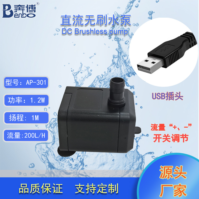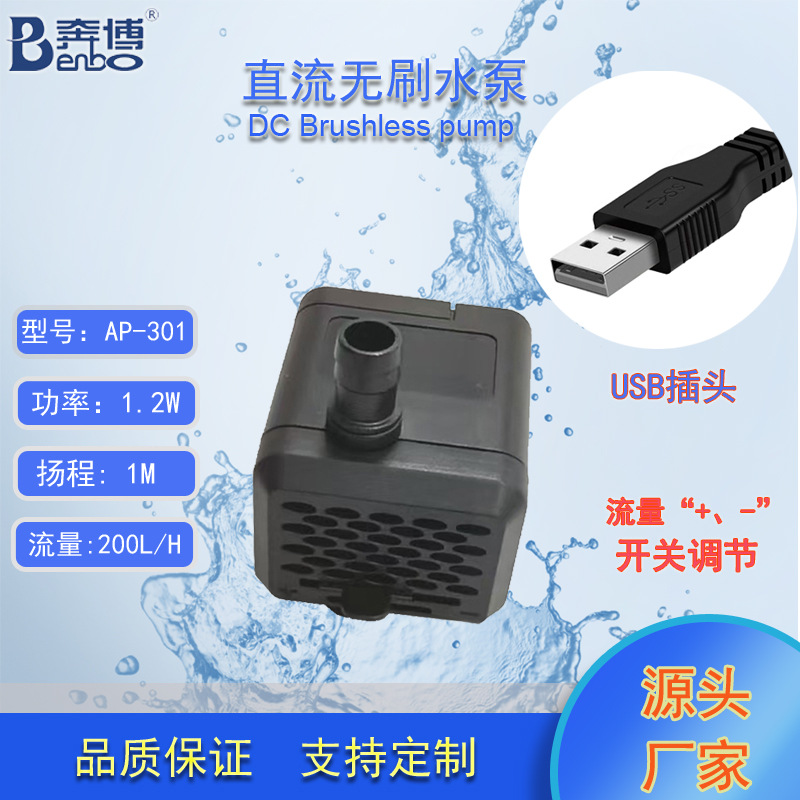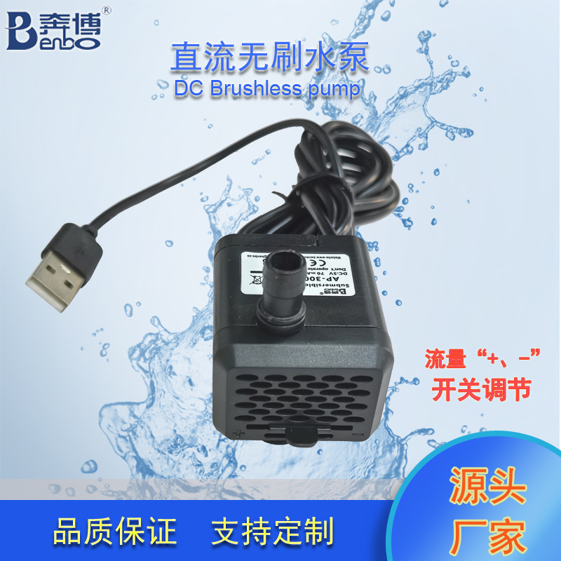 奔博DC5V USB直流无刷无土栽培鱼缸水泵桌面流水摆件水泵带开关
