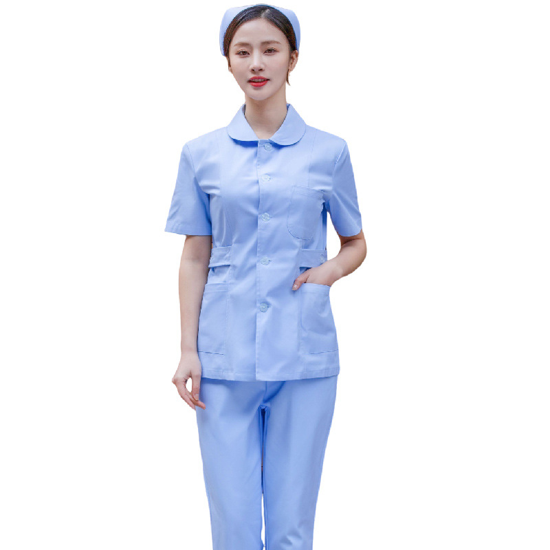 护士服女短袖分体套装薄款蓝色牙科医生护理大学西服领医科套装