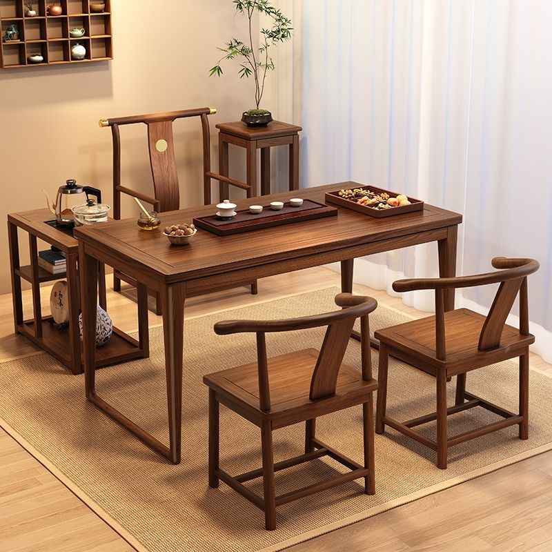 | 颜色 | 1.6米素茗干泡桌+1中圆椅4元宝凳+茶水柜 | 颜色 | 1.6米素茗干泡桌+1中圆椅4小围椅+茶水柜 |