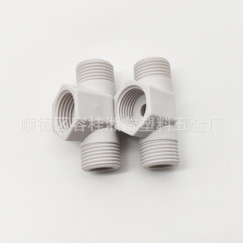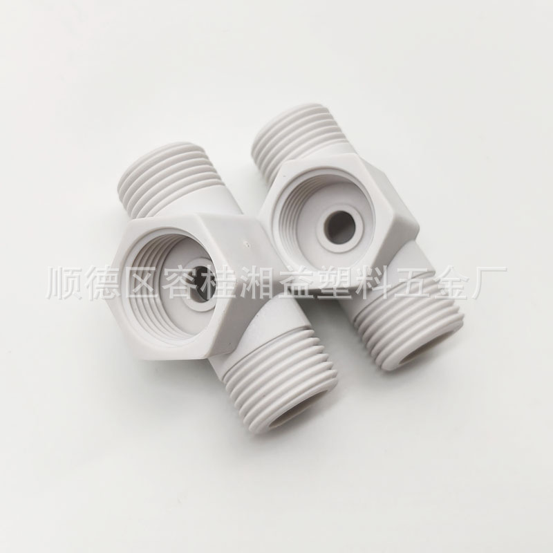 定制开模生产各类尼龙塑料件 尼龙塑料三通分水器4分外牙内牙配件