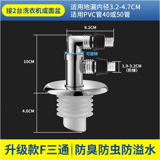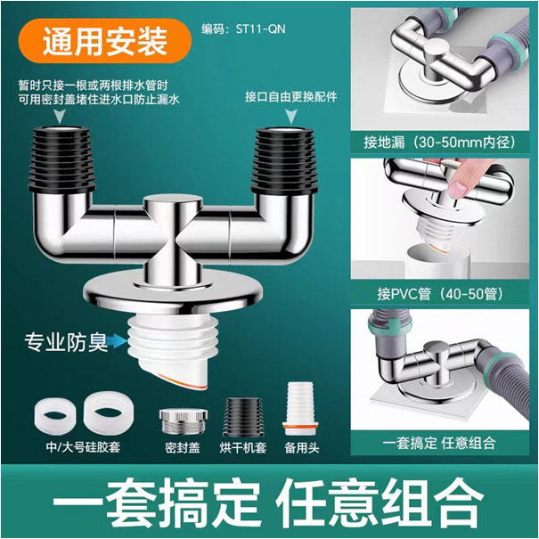 洗衣机下水管地漏防堵塞双排接头二合一防溢地漏下水三通神器批发