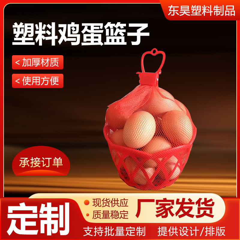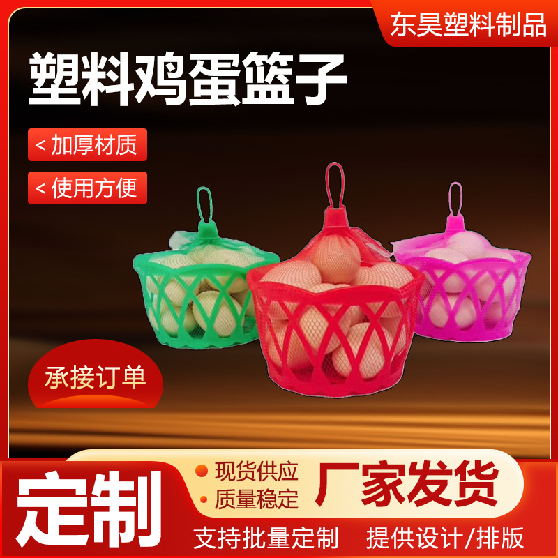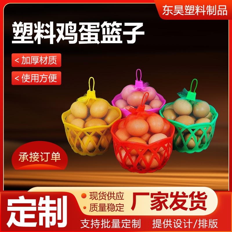 塑料鸡蛋篮子圆形小筐装包装筐编织土鸡蛋手提小篮子水果鸡蛋蓝