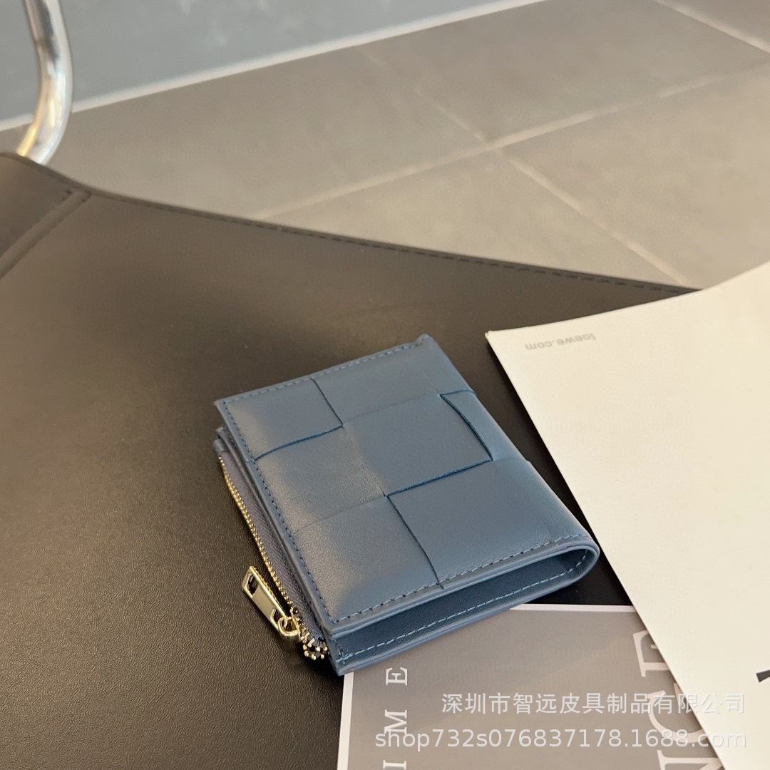 真皮拉链短款钱包 韩国热销时尚小羊皮编织钱包多卡位钱夹wallet