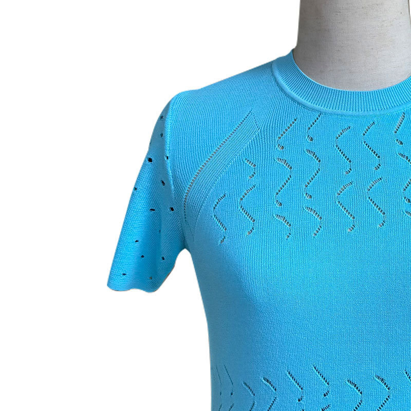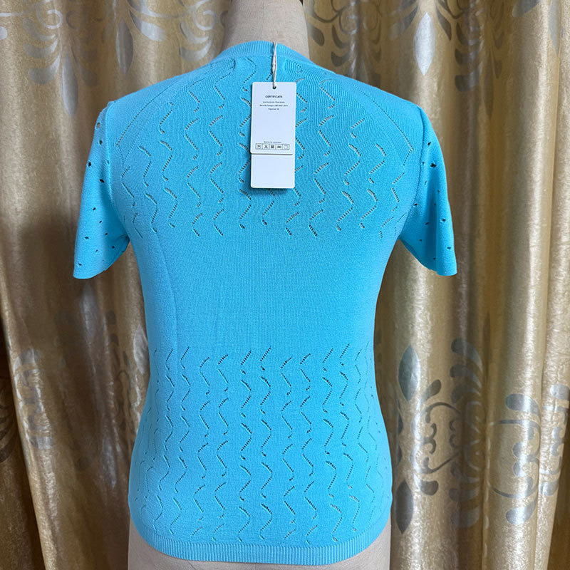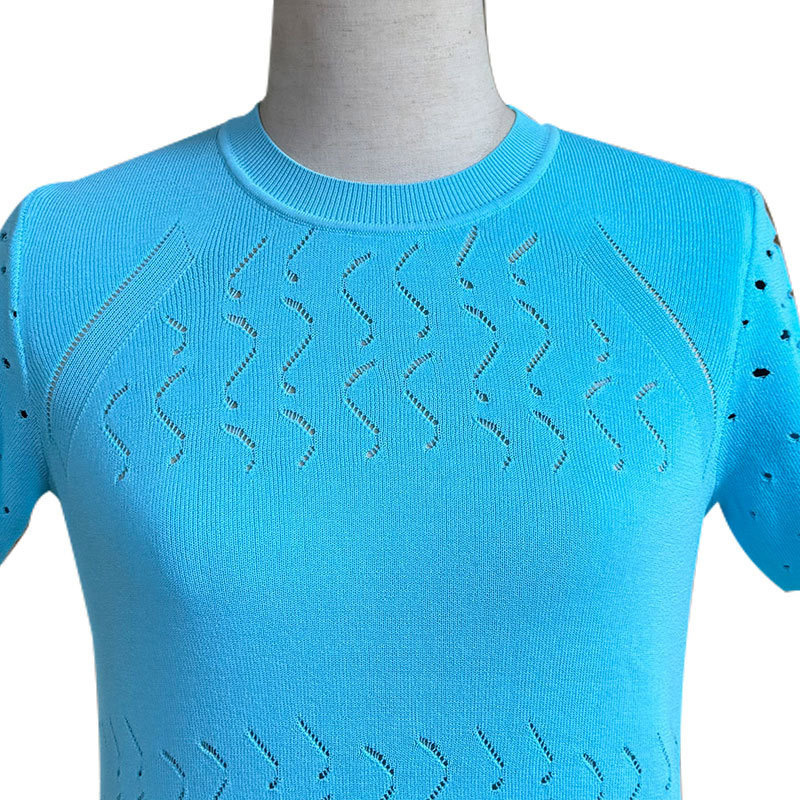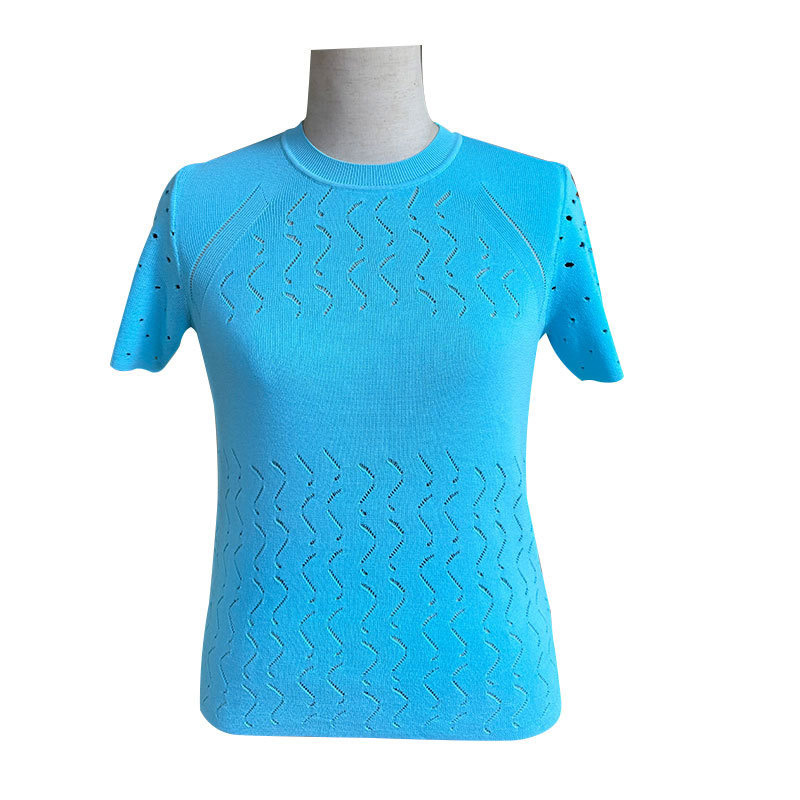 纯色圆领正肩针织短袖T恤妈妈夏季蓝色薄款设计感小众针织T恤