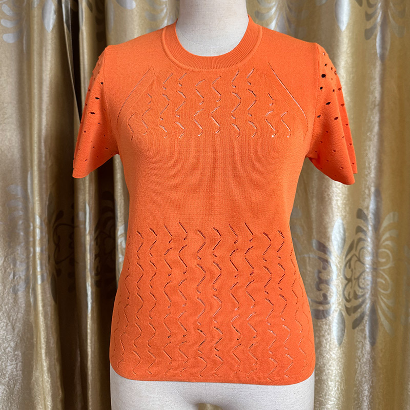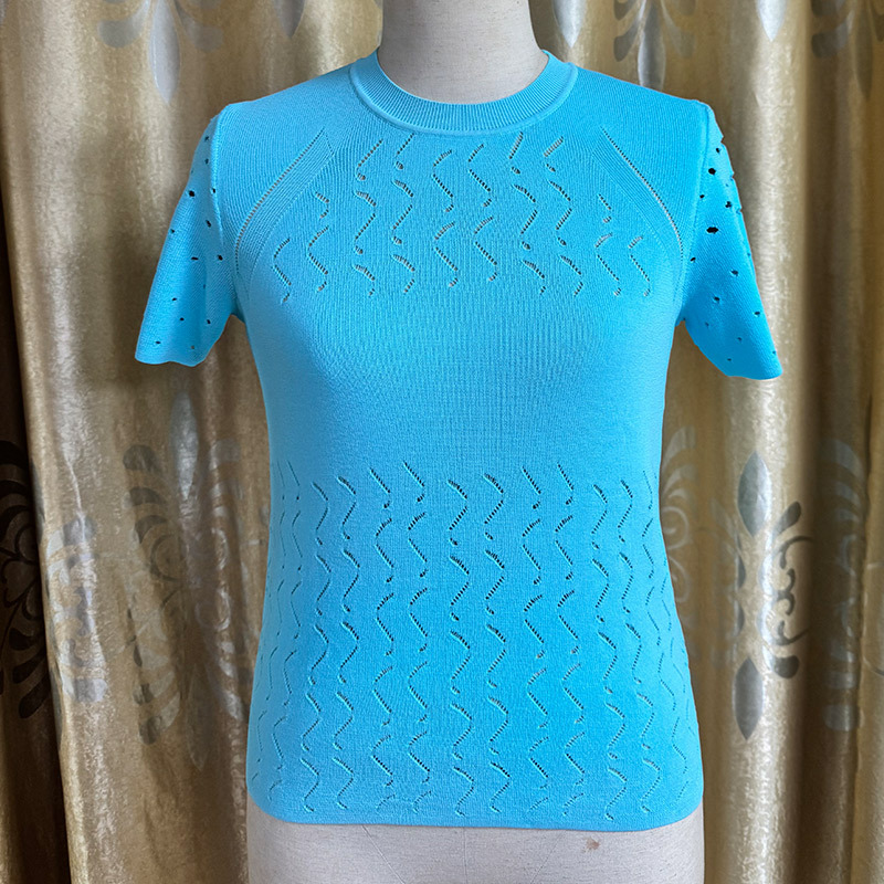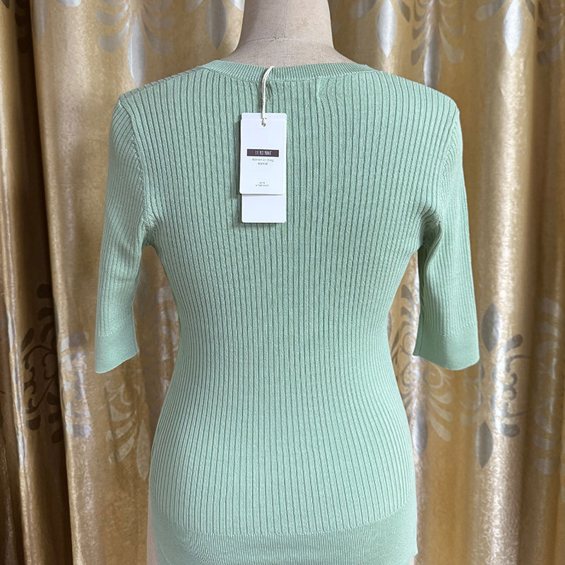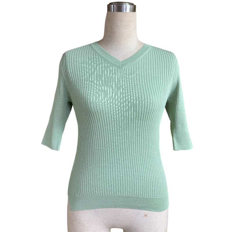 V领中袖针织衫夏季简约修身纯色打底螺纹显瘦舒适日系休闲百搭
