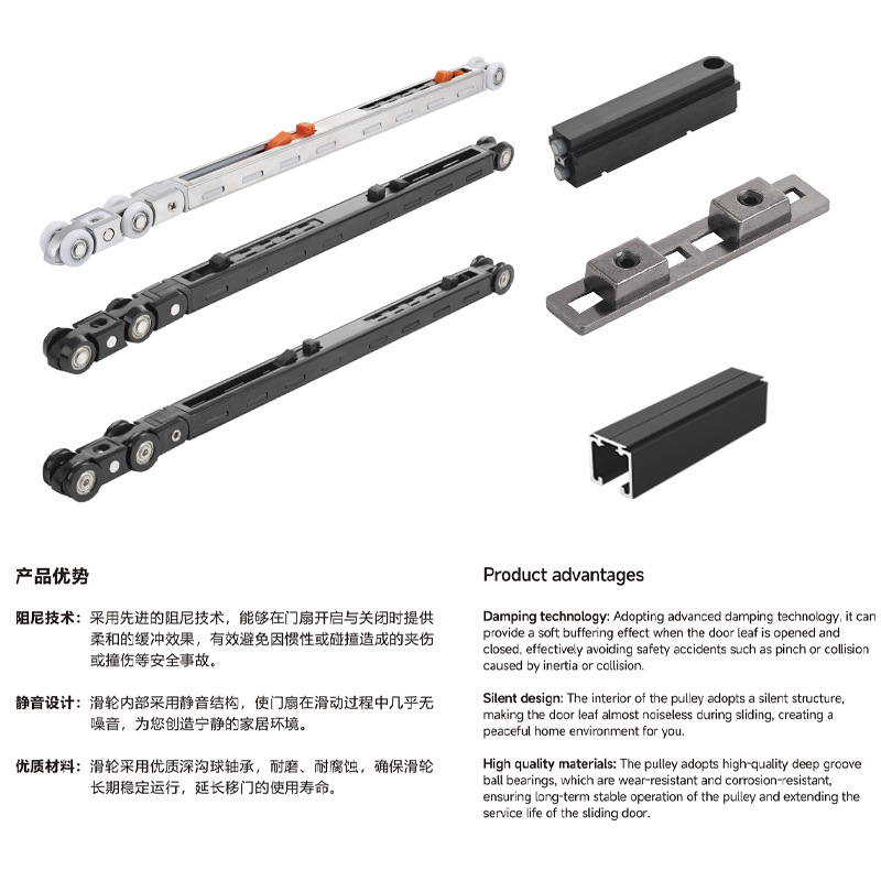 按弹式口袋门移门滑轮系统移门滑轨阻尼缓冲吊趟门轨道平移门导轨