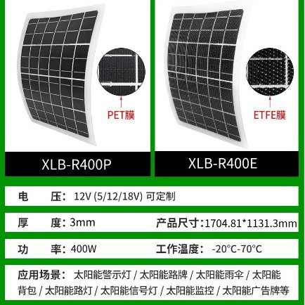 柔性太阳能板400W单晶硅光伏发电板户外房车便携车顶太阳能发电板