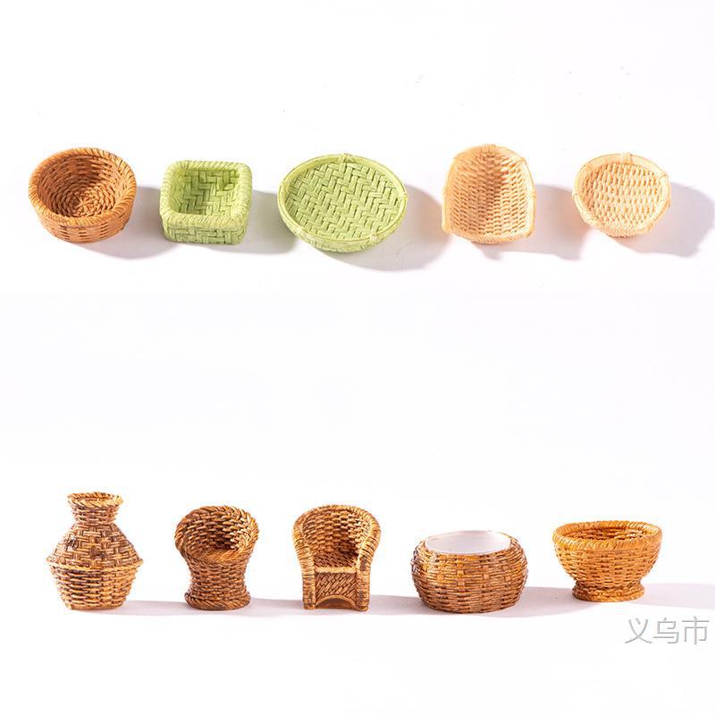 竹编家具树脂摆件竹椅簸箕鱼篓篮子竹罐工艺品创意家居装饰品配件