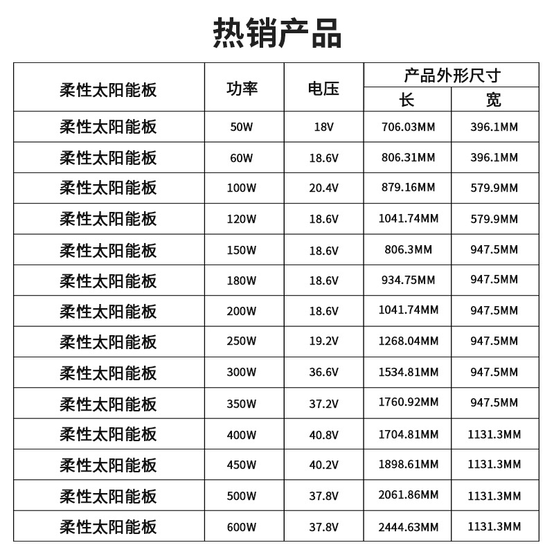 电池片类型 | 单晶硅 | | 系列 | 太阳能柔性板 |