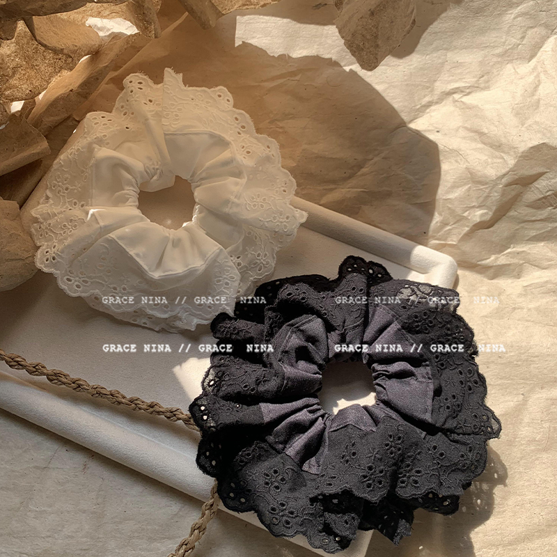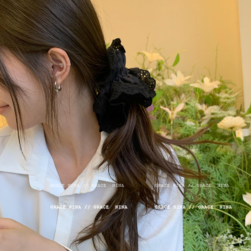 双层大号同款纯色蕾丝花边大肠发圈2025新款发绳扎头花高级感发饰