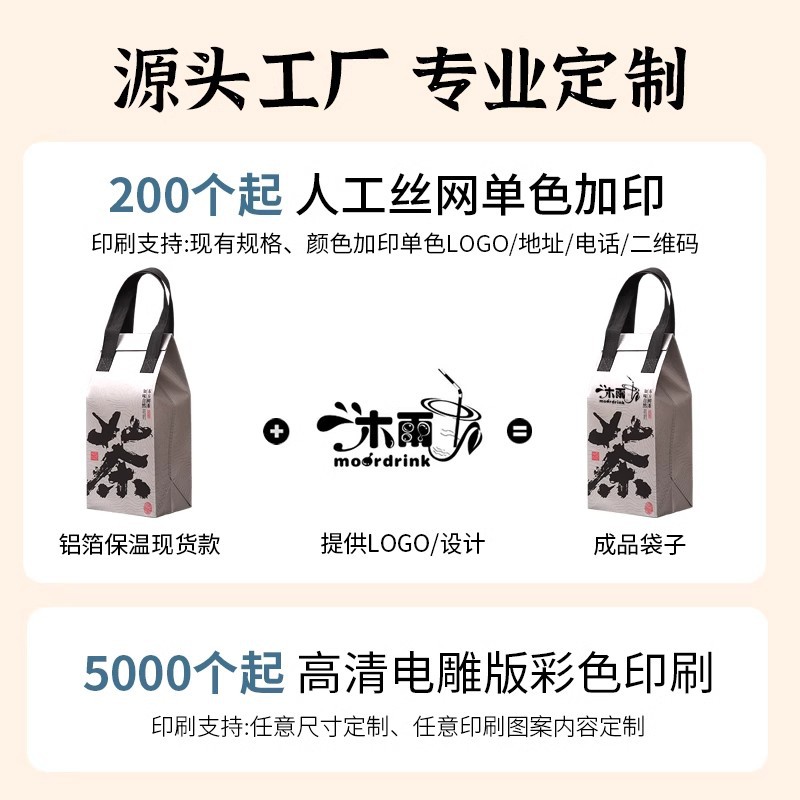 奶茶外卖保温袋餐饮商用无纺布铝箔一次性单杯咖啡手提打包袋定制