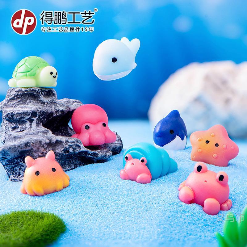 微景观海洋小生物海豚章鱼水母螃蟹乌贼海龟鲸鱼水族鱼缸造景摆件