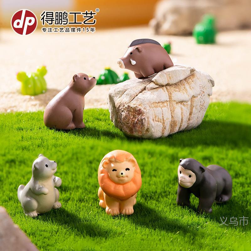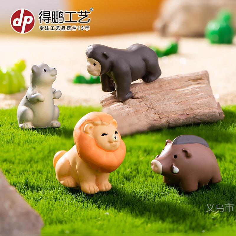 苔藓微景观野生动物狮子棕熊大猩猩野猪树脂摆件园艺造景装饰配件