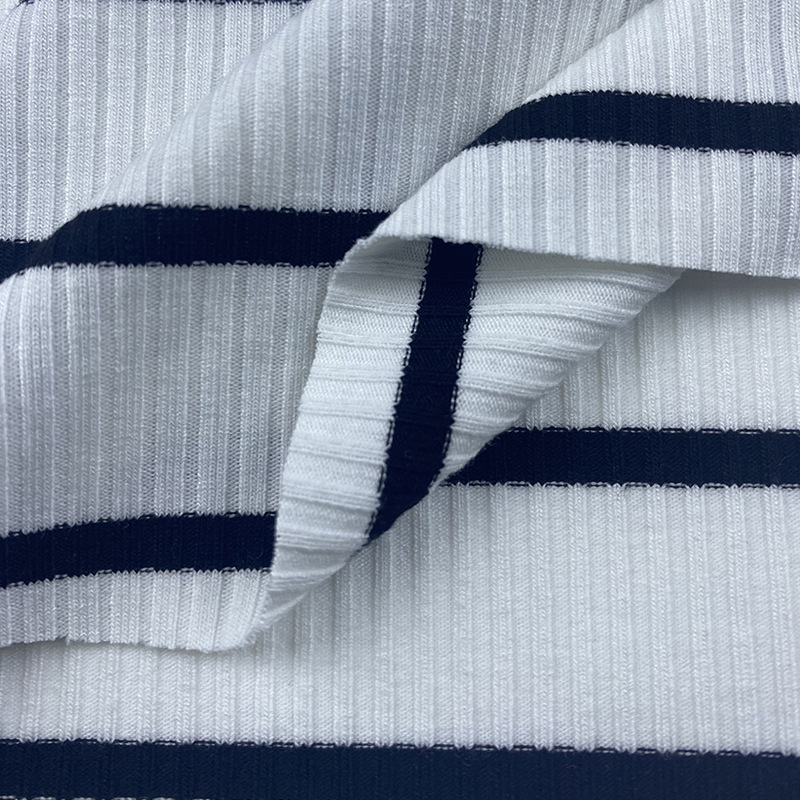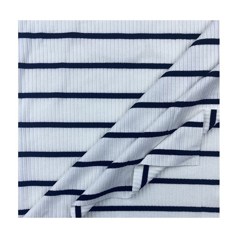 现货供应春夏彩条罗纹布料针织彩色条纹螺纹打底衫色织条纹面料