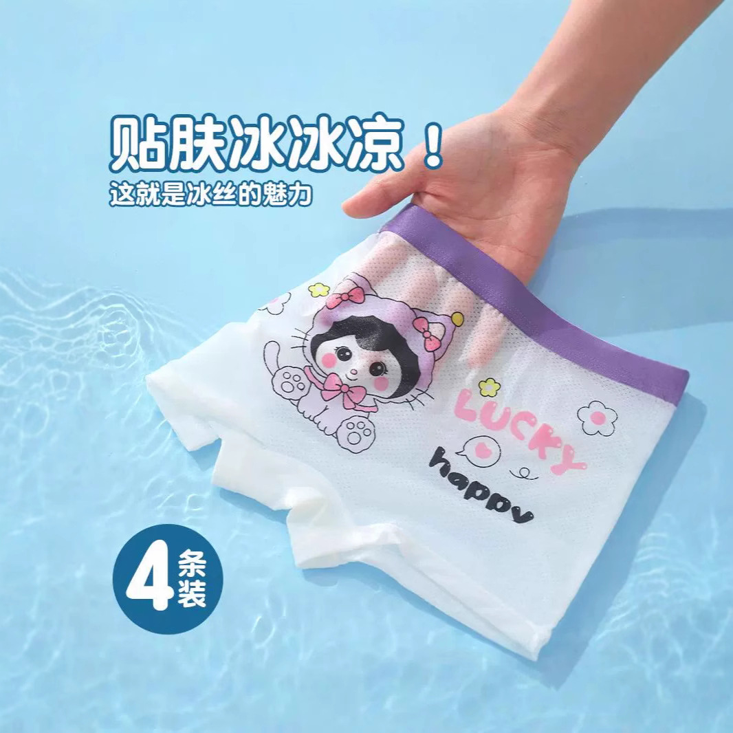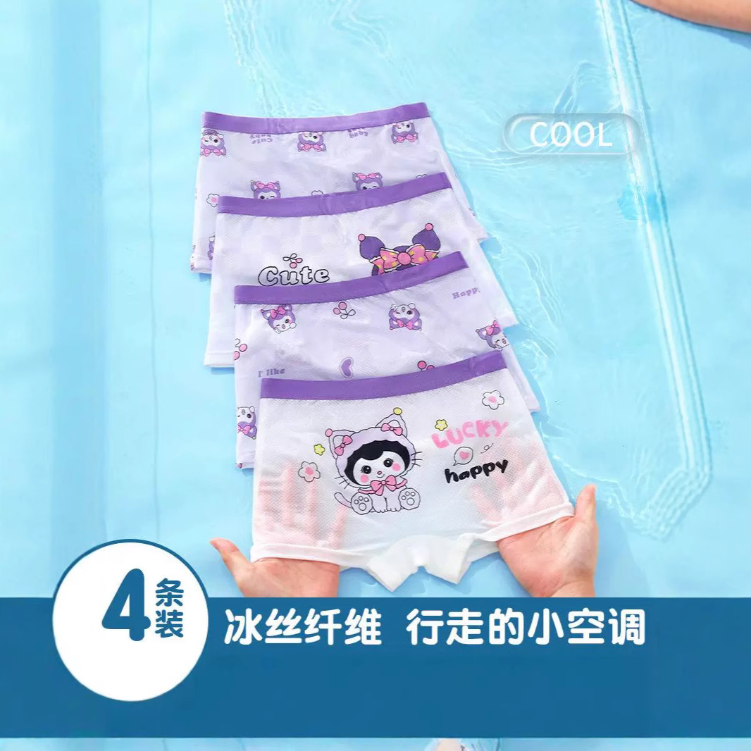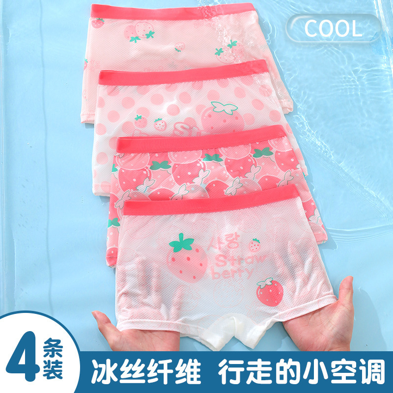 批发夏季薄款冰丝少女薄款中腰透气儿童内裤中大童平角小女孩底裤