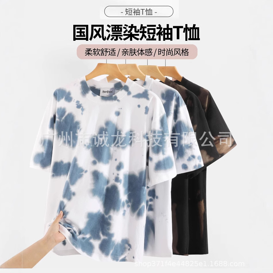2025年夏季国风漂染短袖T恤 男士夏季时尚潮流纯棉短袖百搭休闲