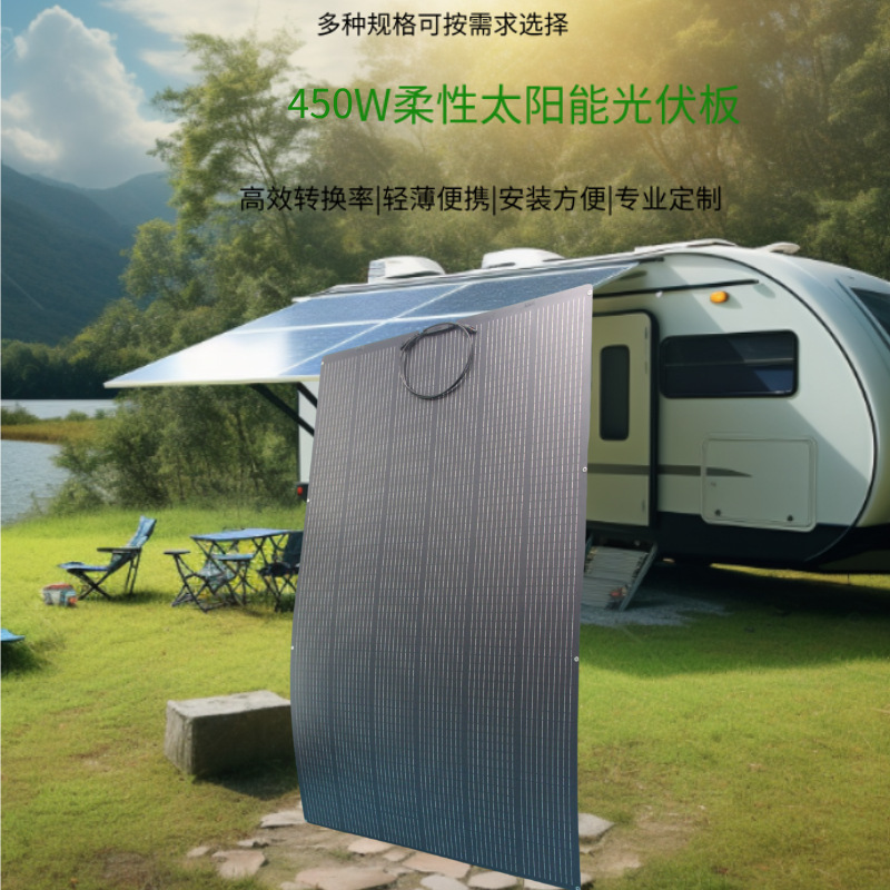 450W太阳能板单晶硅柔性太阳能充电板ETFE膜可弯曲车顶发电板光伏