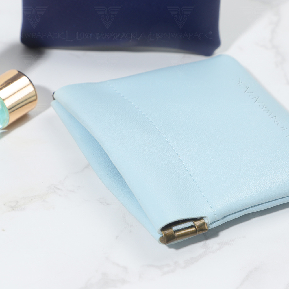 批发pu皮革弹片包外出便携蓝牙耳机收纳袋皮质零钱化妆品收纳包