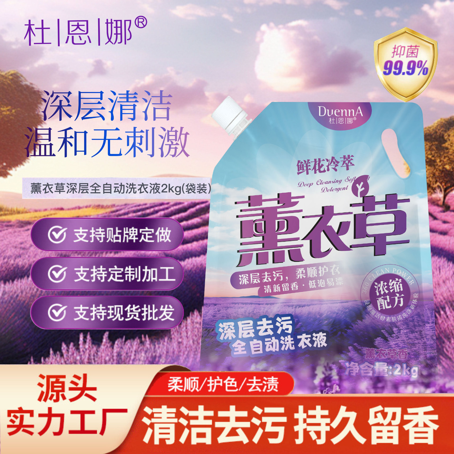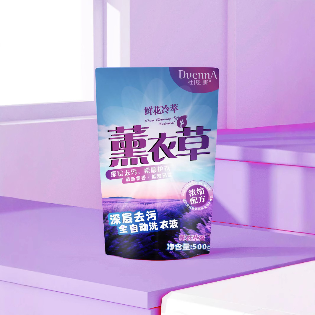 袋装洗衣液薰衣草香味不伤衣物深层护理强效去污清洁整箱批发工厂