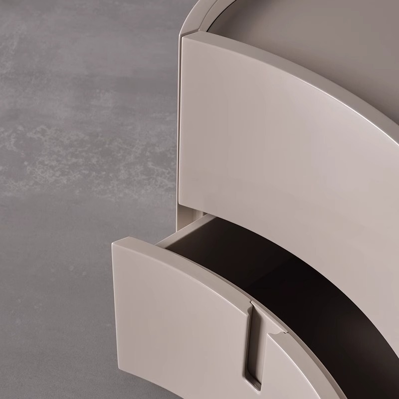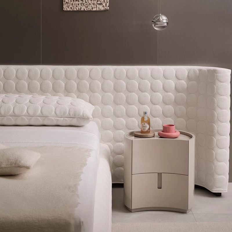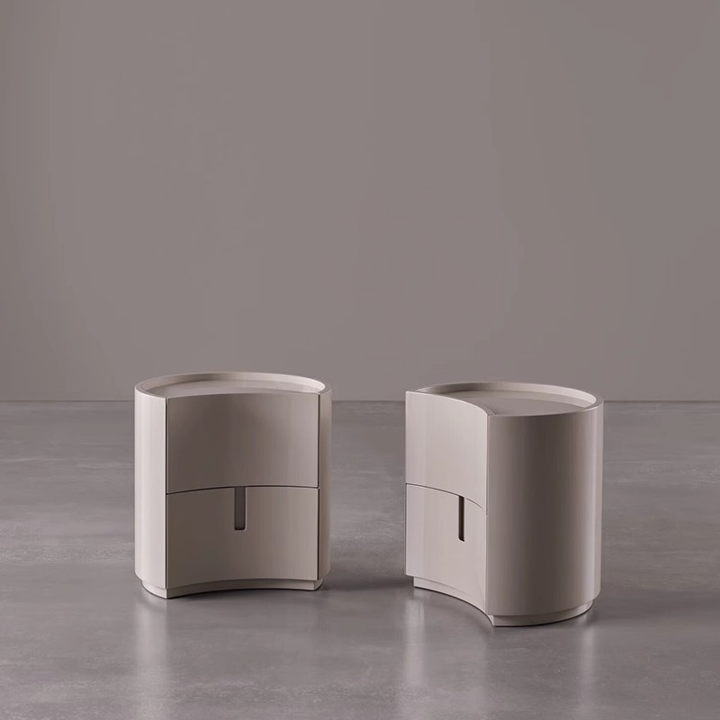 意式极简实木床头柜圆形卧室轻奢储物柜中式床边几设计师创意家具