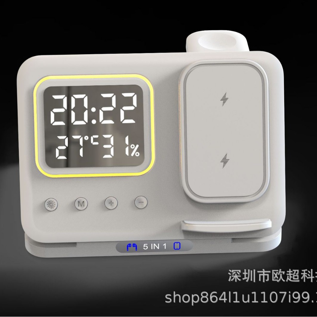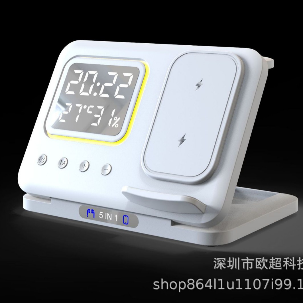 苹果三星15W快充无线充电器 五合一时钟折叠支架