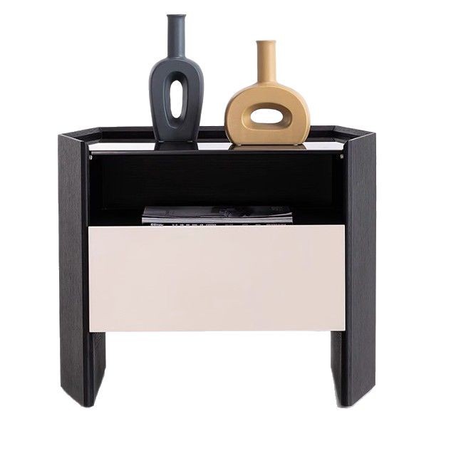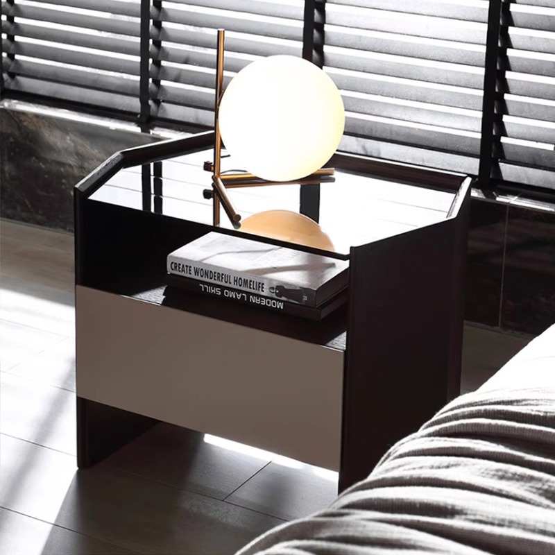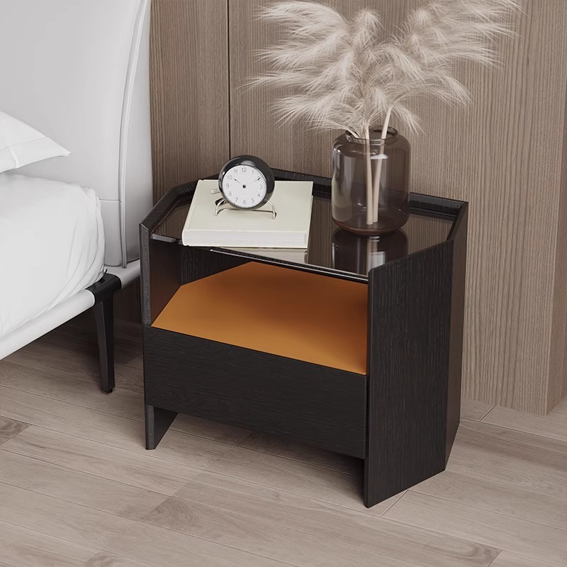 意式极简六边形床头柜简约现代设计师百搭卧室黑橡木色玻璃床边柜
