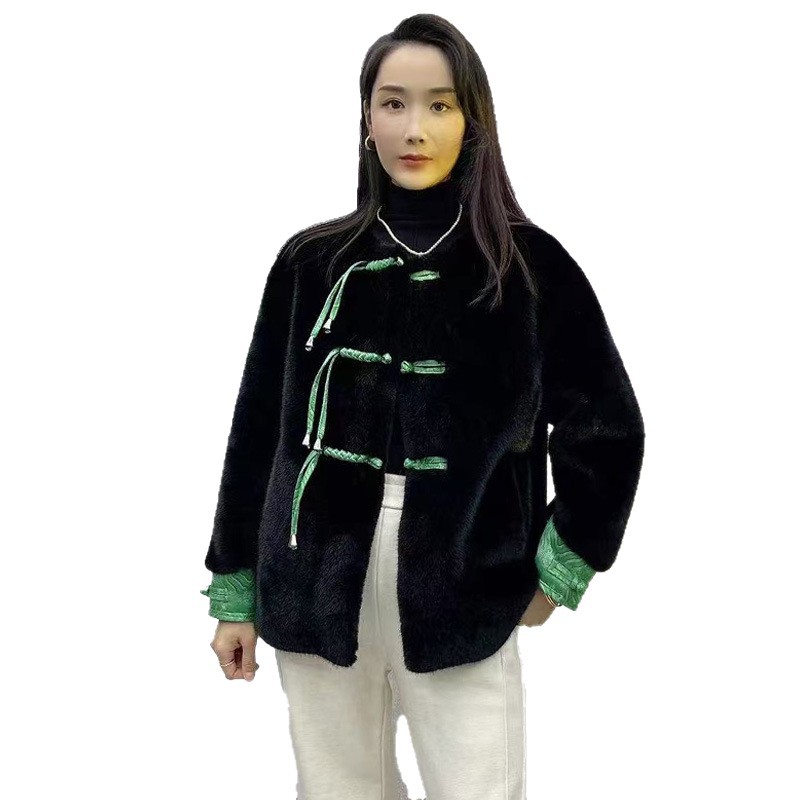 新中式仿水貂绒皮草秋冬加厚皮毛一体国风盘扣气质显瘦外套宽松款