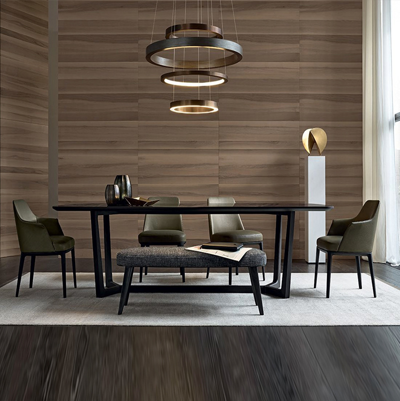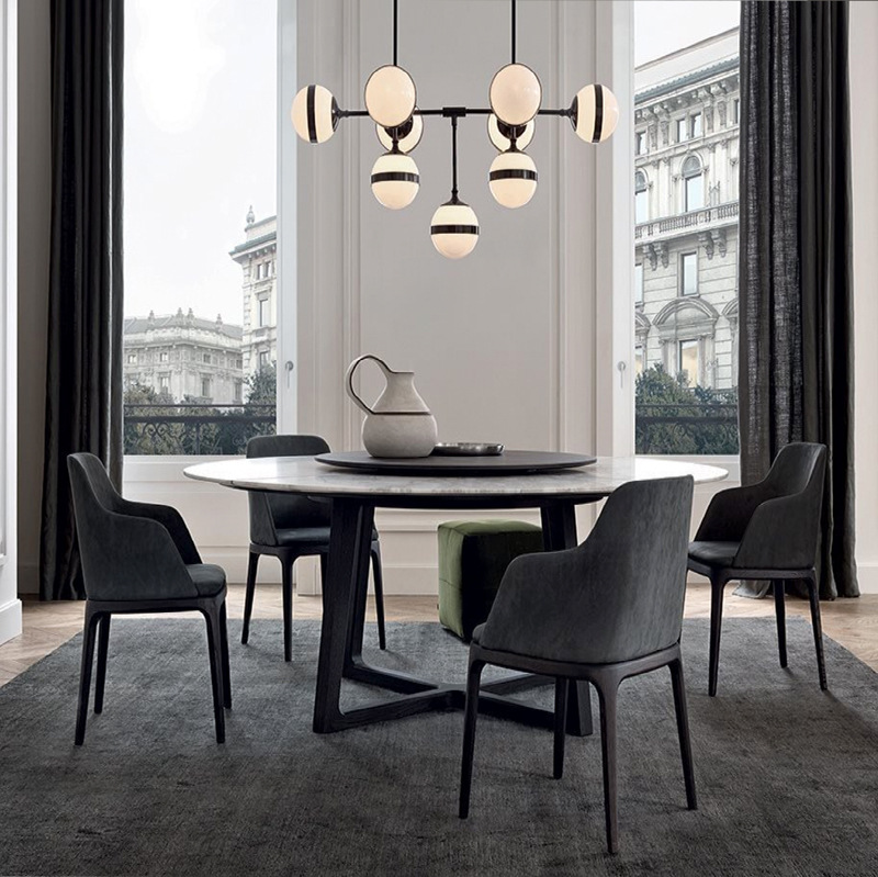 现代简约北欧实木岩板长方形餐桌意式轻奢小户型家用圆餐桌组合