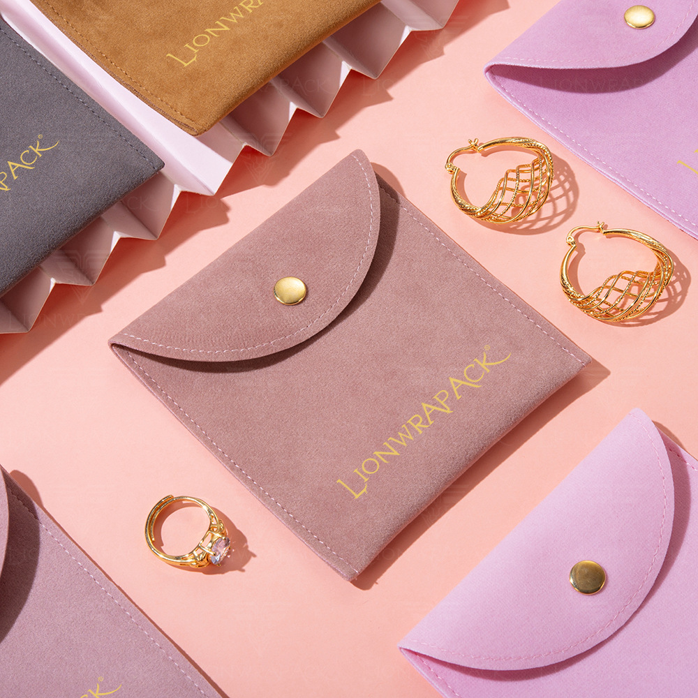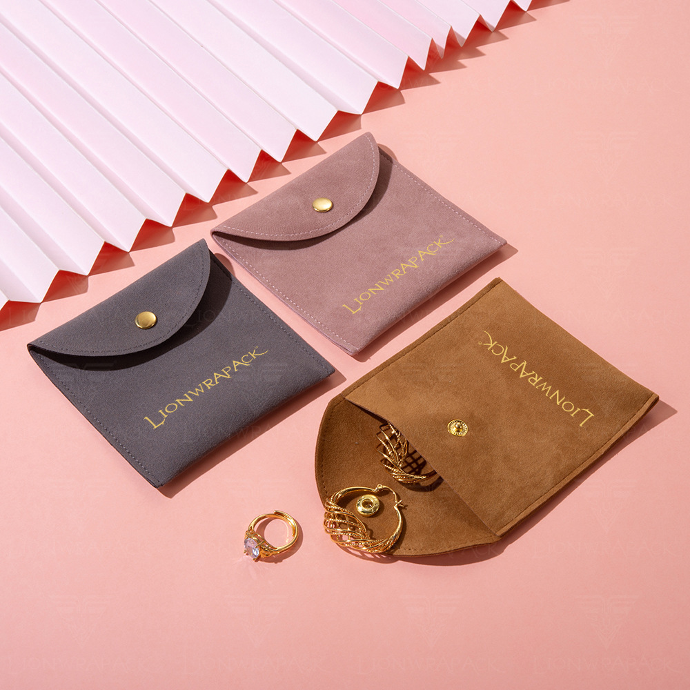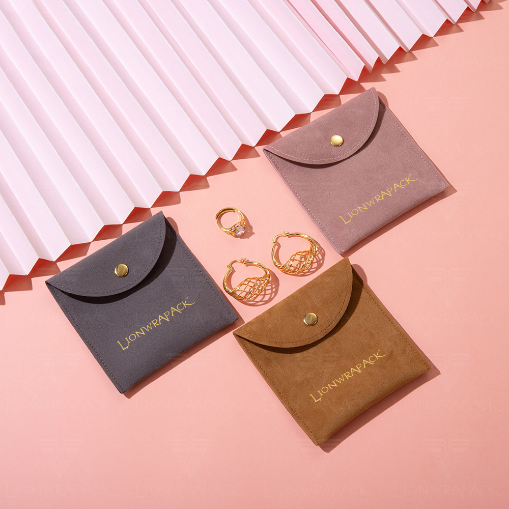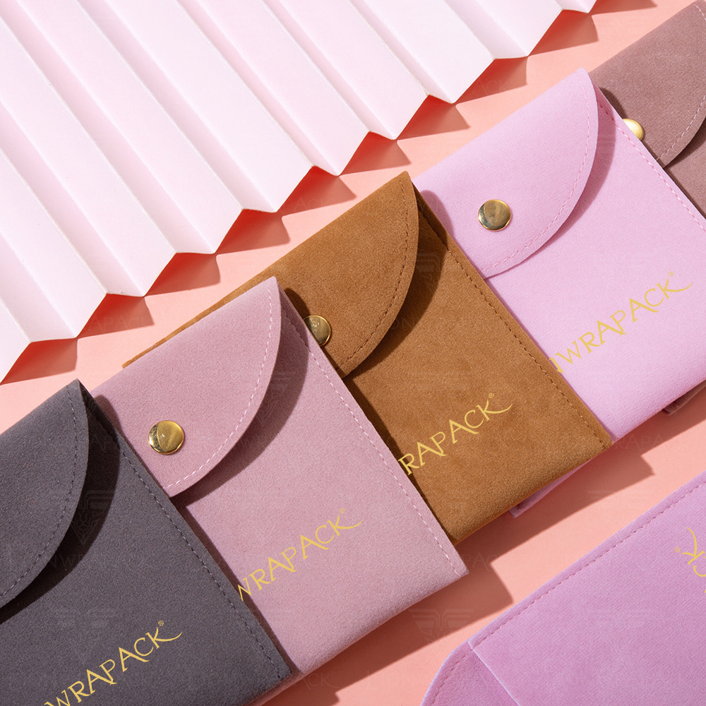 高档简约绒布袋戒指项链耳环超纤按扣翻盖包装袋子批发