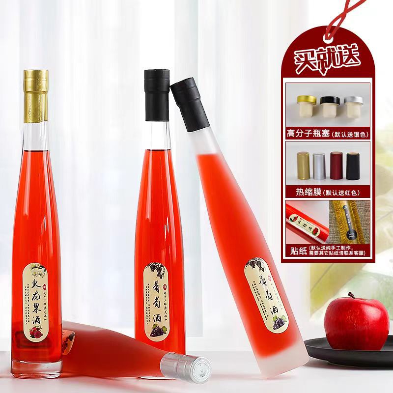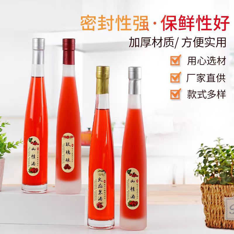 现货批发创意透明直筒女人花玻璃酒瓶葡萄洋酒瓶果酒冰酒瓶