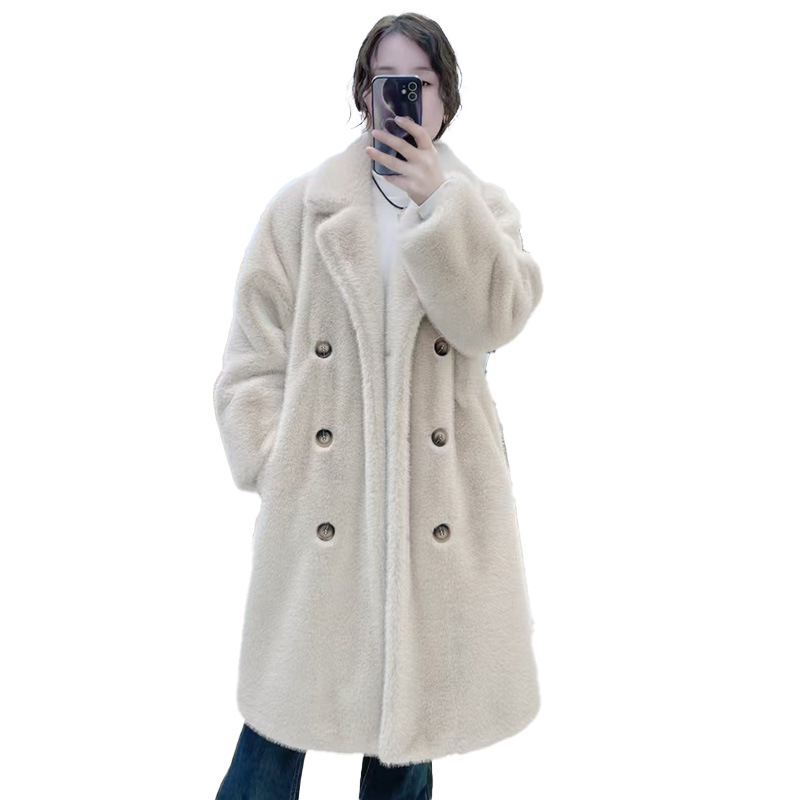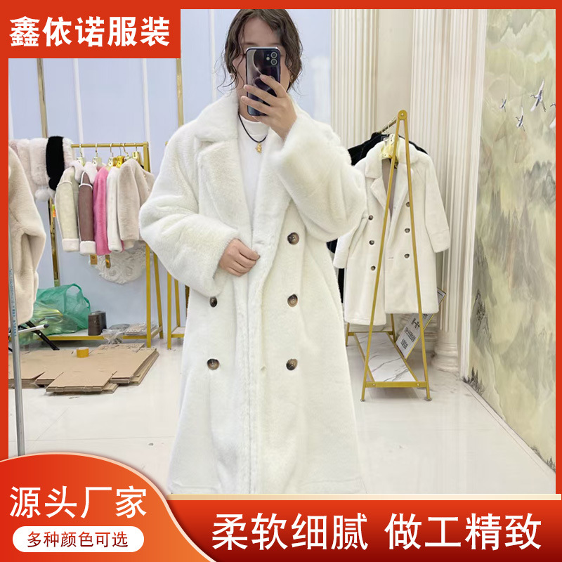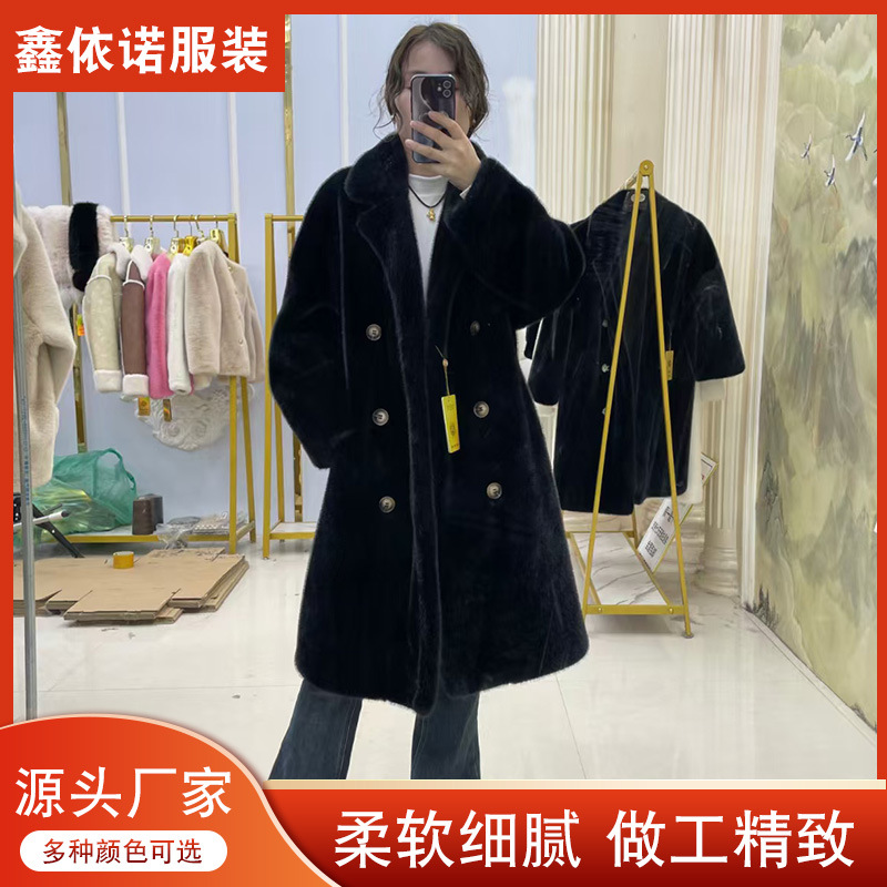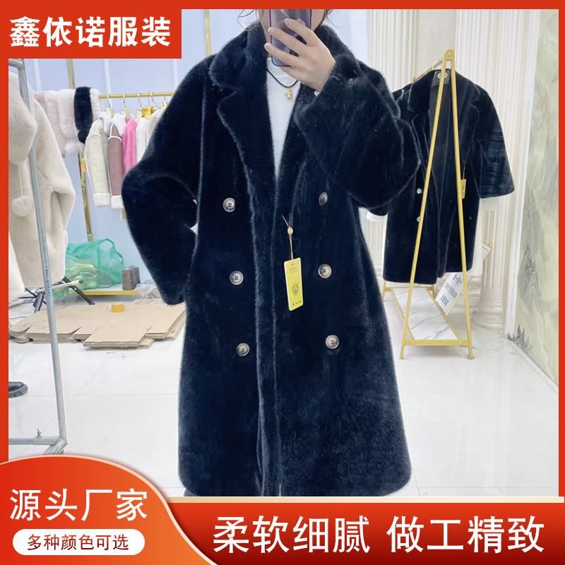 冬季仿皮草仿水貂绒长款宽松加厚皮毛一体西服领毛毛外套大衣女