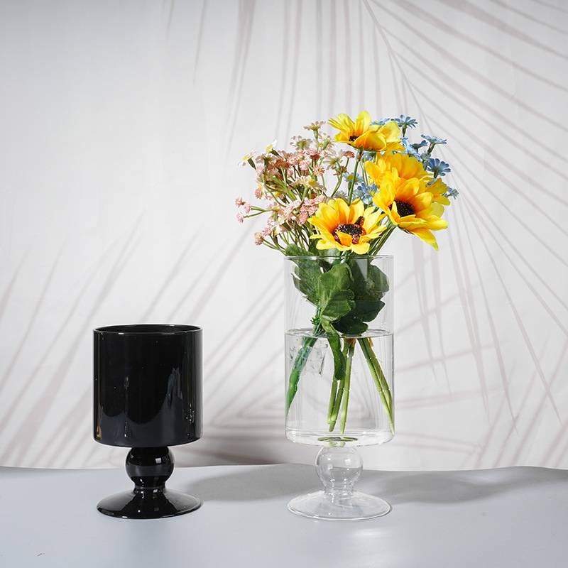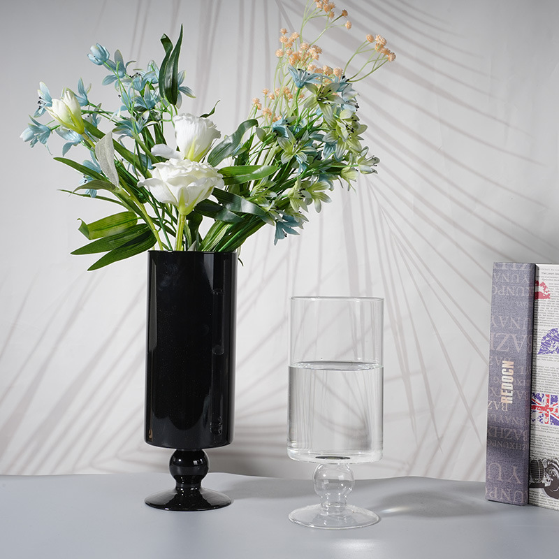 现代简约水培鲜花复古黑色花瓶客厅桌面装饰摆件透明直筒玻璃花瓶