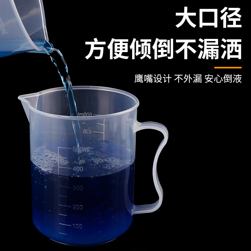 透明量杯250ml5000ml塑料量杯烘焙实验室带刻度带把手加厚PP量杯