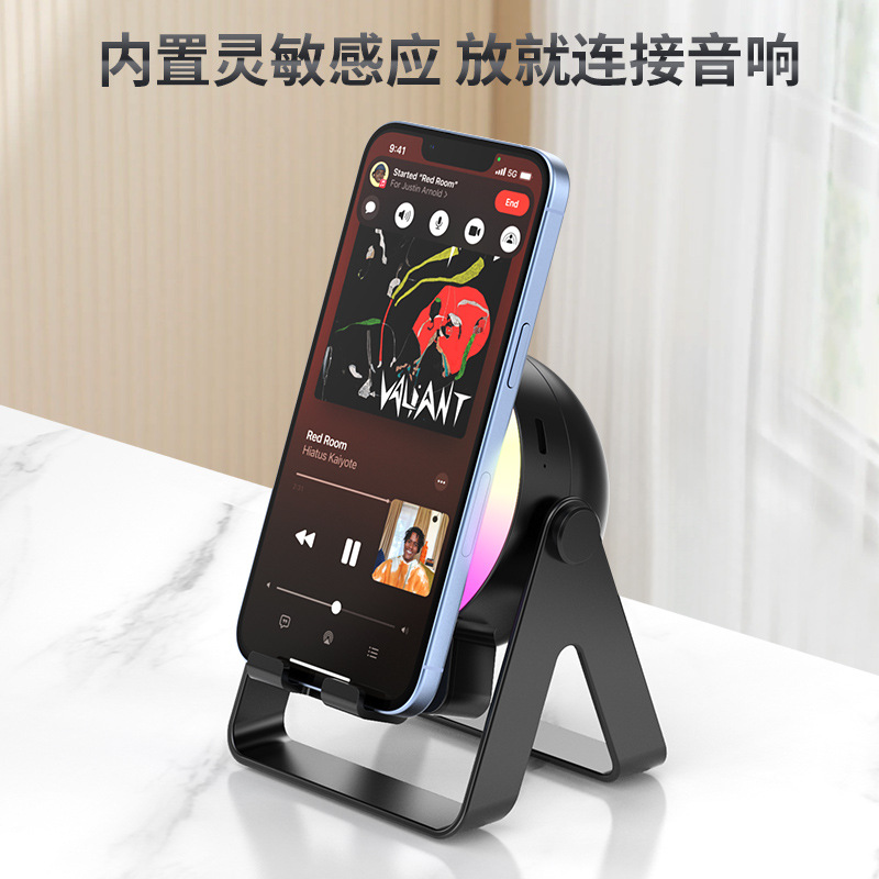 新款多功能手机支架蓝牙音箱 5W氛围夜灯户外无线感应充手机支架