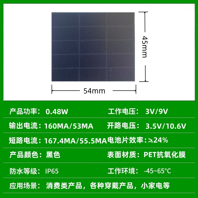 型号 | SZ-XLB4554-0.48W-9V | | 组件类型 | 单晶组件 |