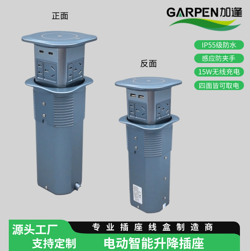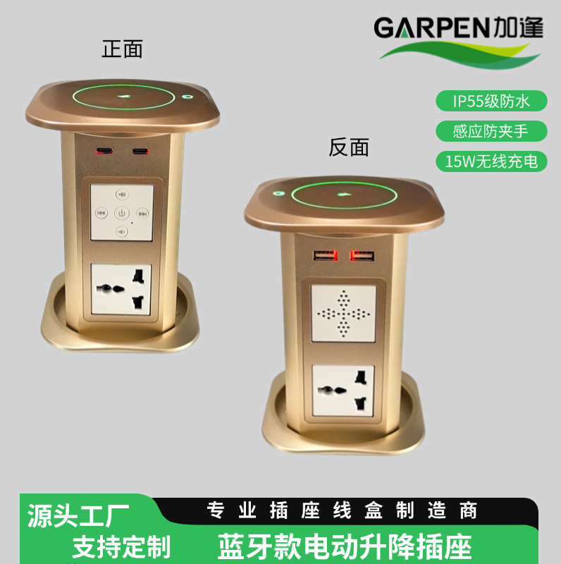 电动智能升降插座 蓝牙音箱 无线充电 USB+Typec厨房岛台电动插座