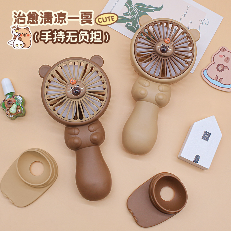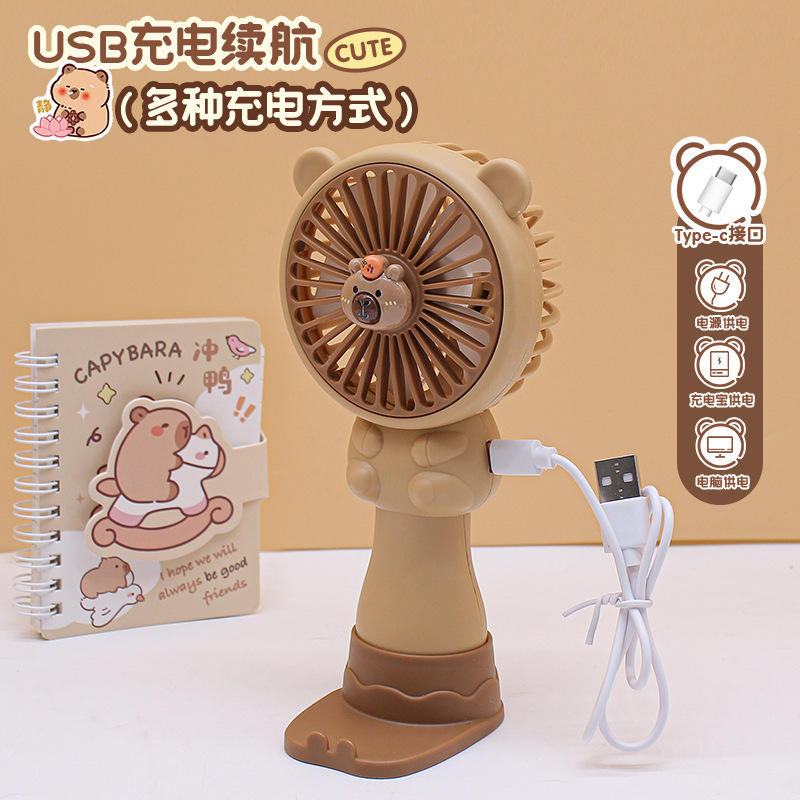 东南亚厂家夏季卡通卡皮巴拉三档风风扇usb充电手机支架充电式
